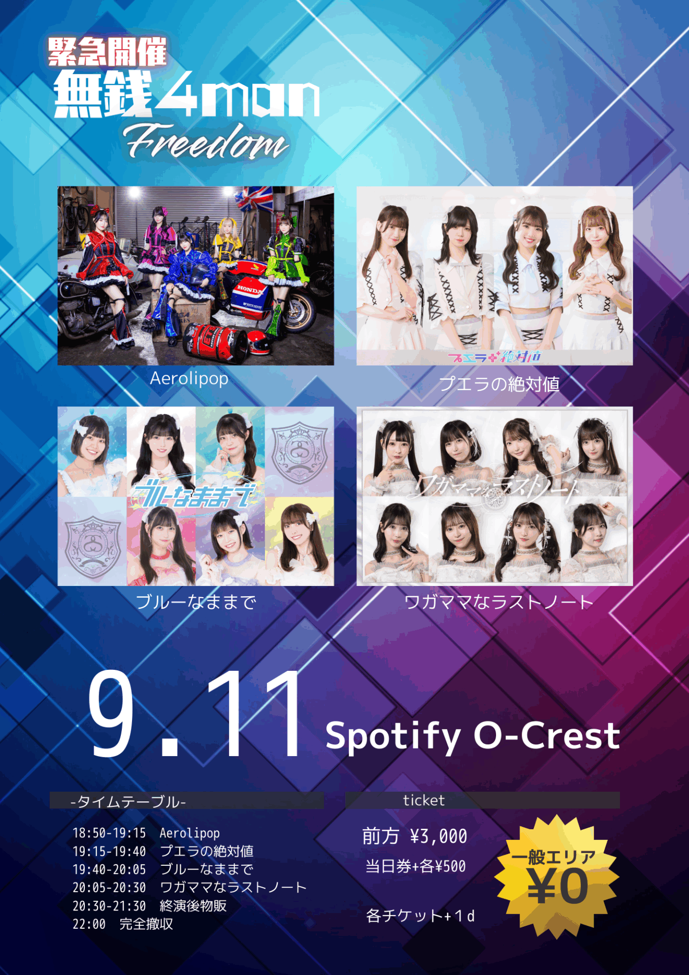 プエラの絶対値 / ワガママなラストノート / ブルーなままで / Aerolipop 緊急開催!4マンfreedom