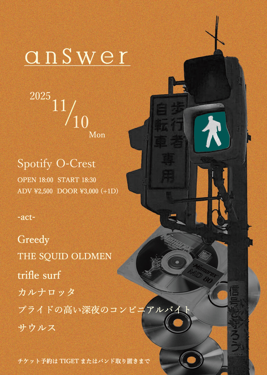 Greedy / THE SQUID OLDMEN / trifle surf / カルナロッタ / プライドの高い深夜のコンビニアルバイト / サウルス answer
