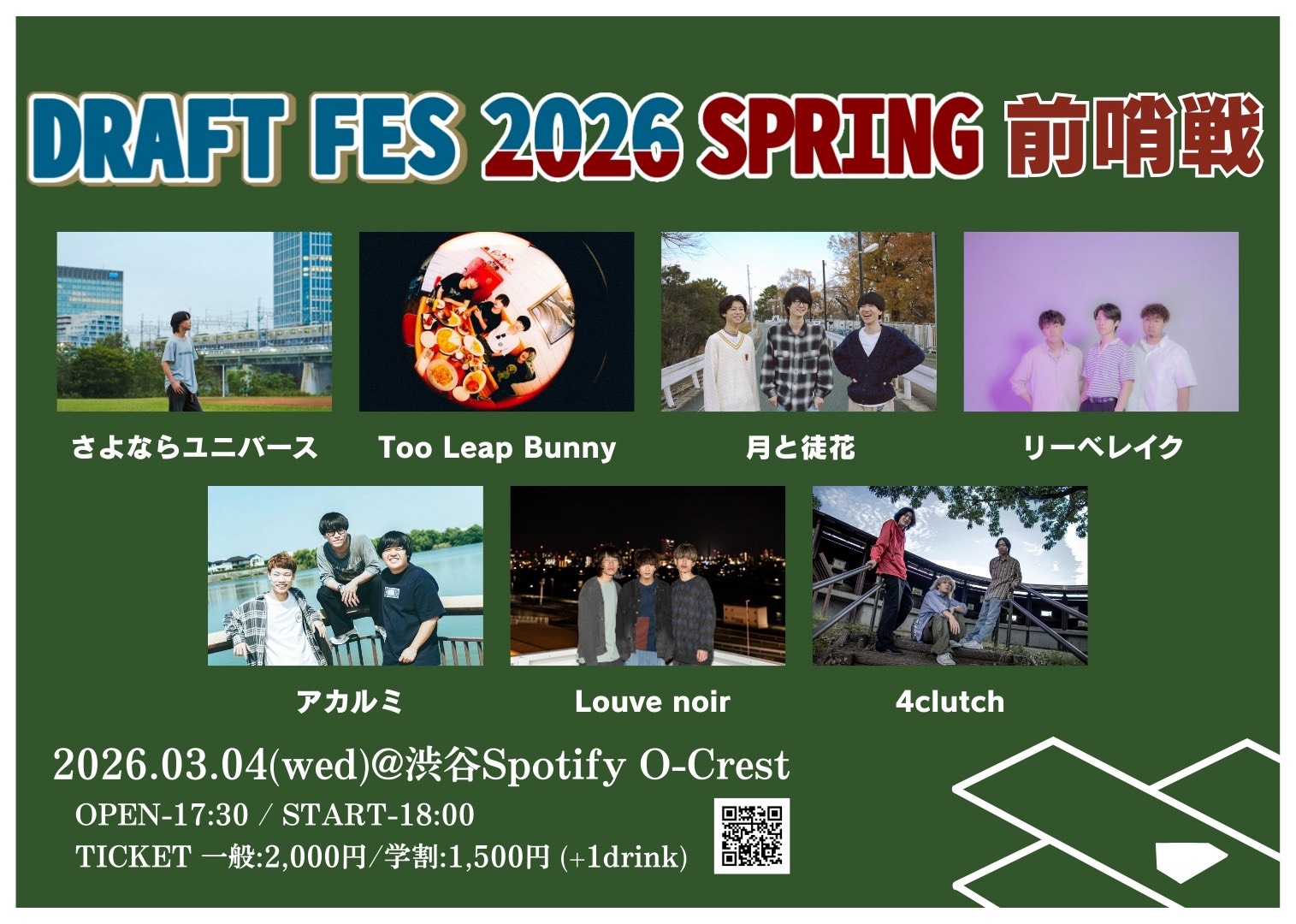 さよならユニバース / Too Leap Bunny / 月と徒花 / リーベレイク / アカルミ / Louve noir / 4clutch DRAFT FES 2026 SPRING 前哨戦