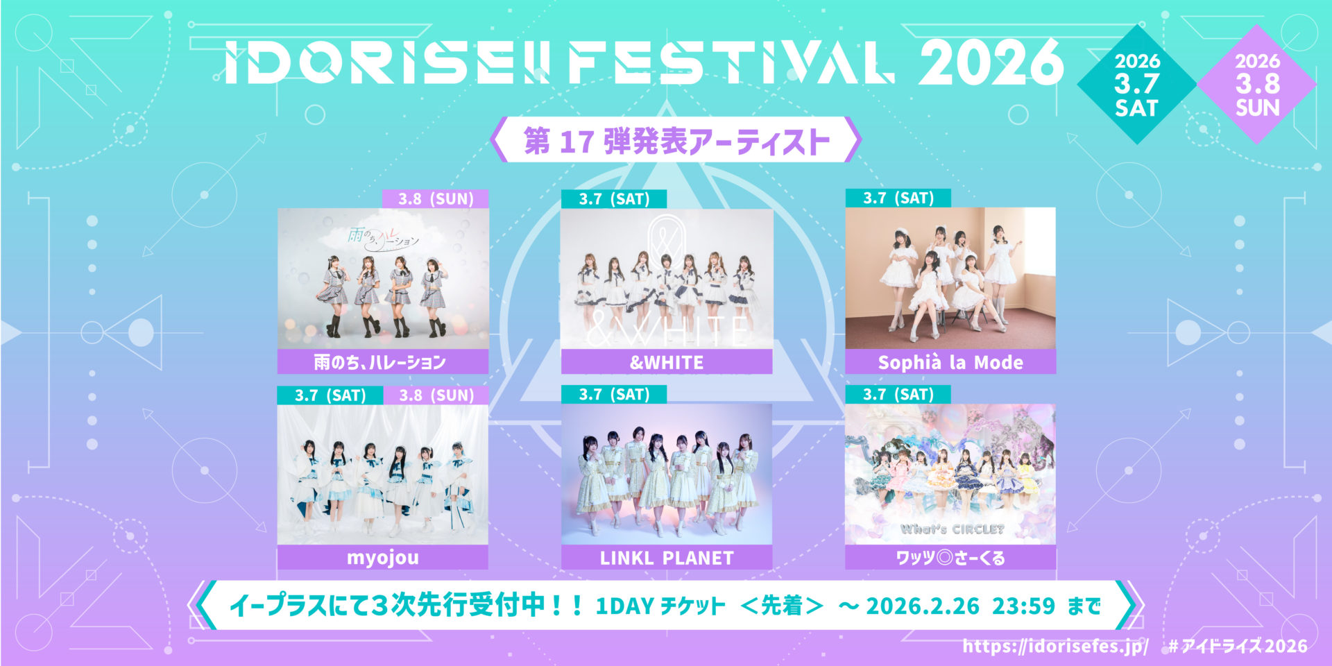 IDORISE!! FESTIVAL 2026 Spotify O-EAST / Spotify O-WEST / Spotify O-nest / Spotify O-Crest / duo MUSIC EXCHANGE / WOMBLIVE / clubasia / LOFT9 Shibuya / SHIBUYA RING