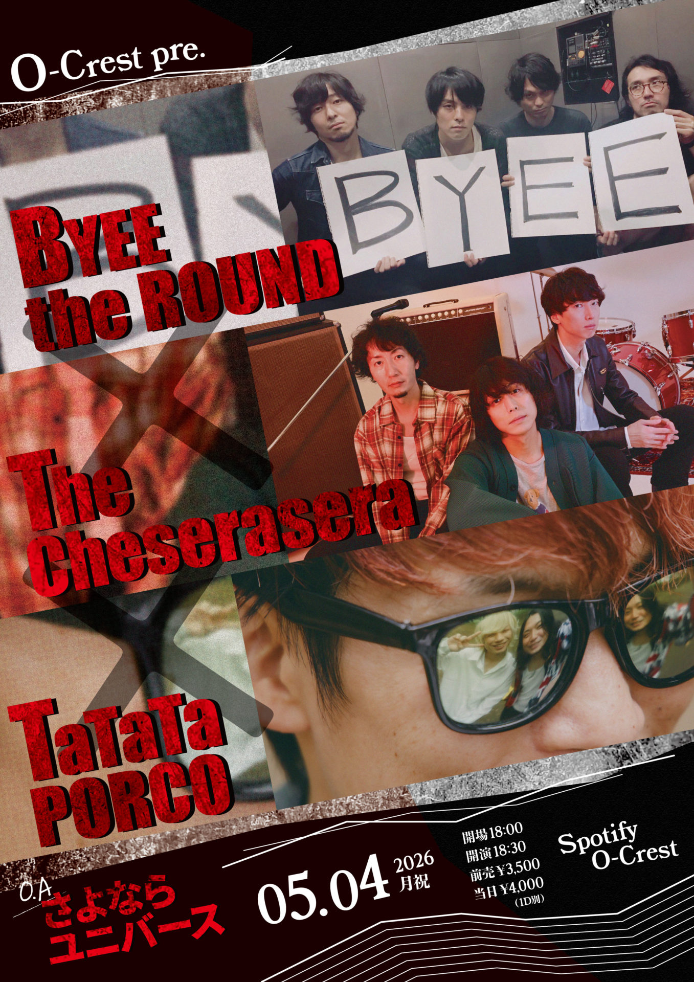 BYEE the ROUND / The Cheserasera / TaTaTaPORCO / さよならユニバース(O.A) O-Crest pre. BYEE the ROUND × The Cheserasera × TaTaTaPORCO