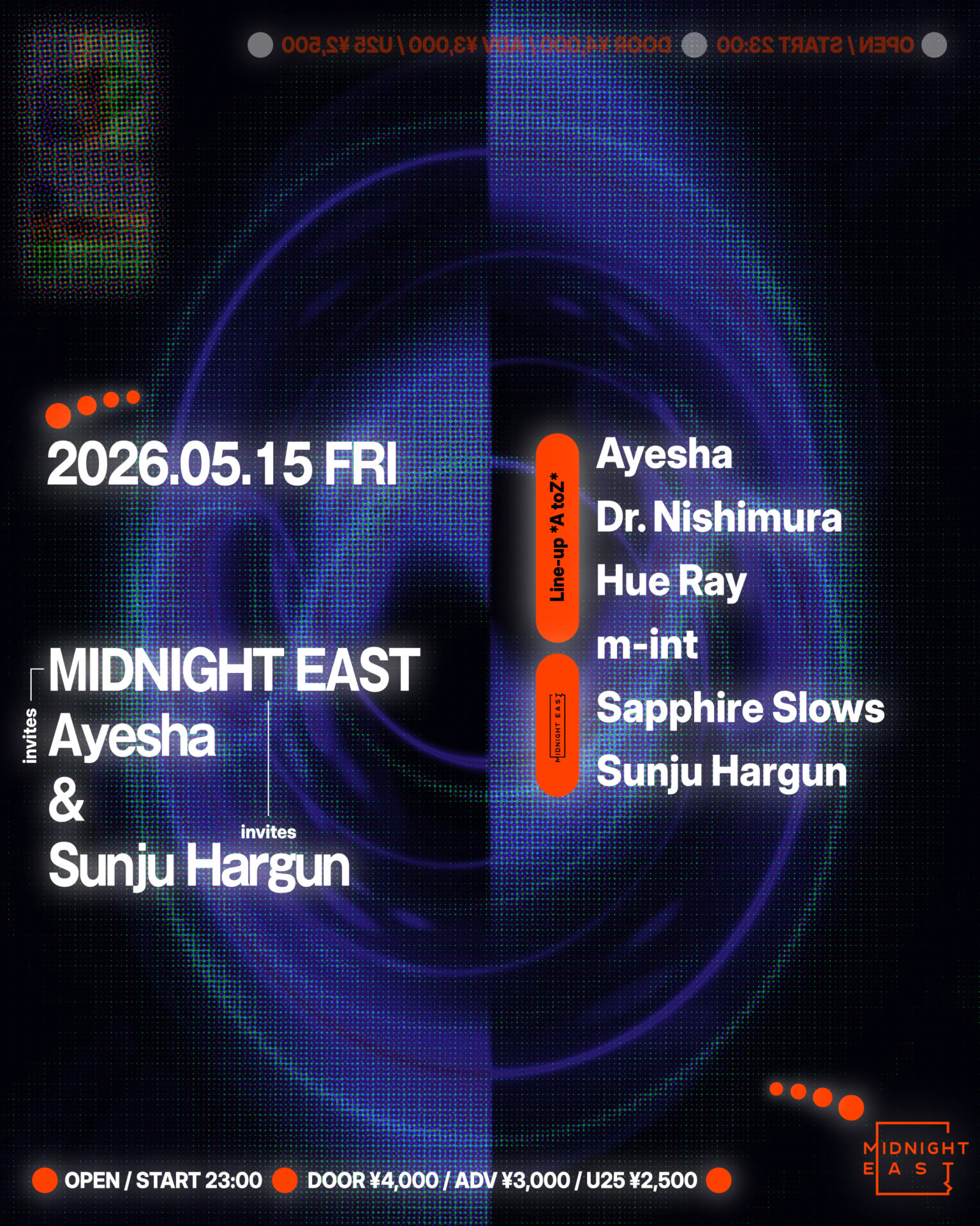 Follow MIDNIGHT EAST’s Instagram account or Click “Interested” on the RA event page to get ¥500 discount from the door price