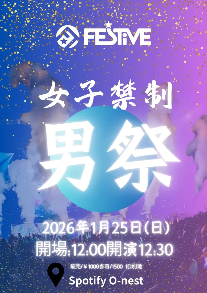 ※本公演は男性のお客様限定のライブとなります、男性以外のお客様がチケットを購入いただいてもご入場できかねますので予めご了承ください。