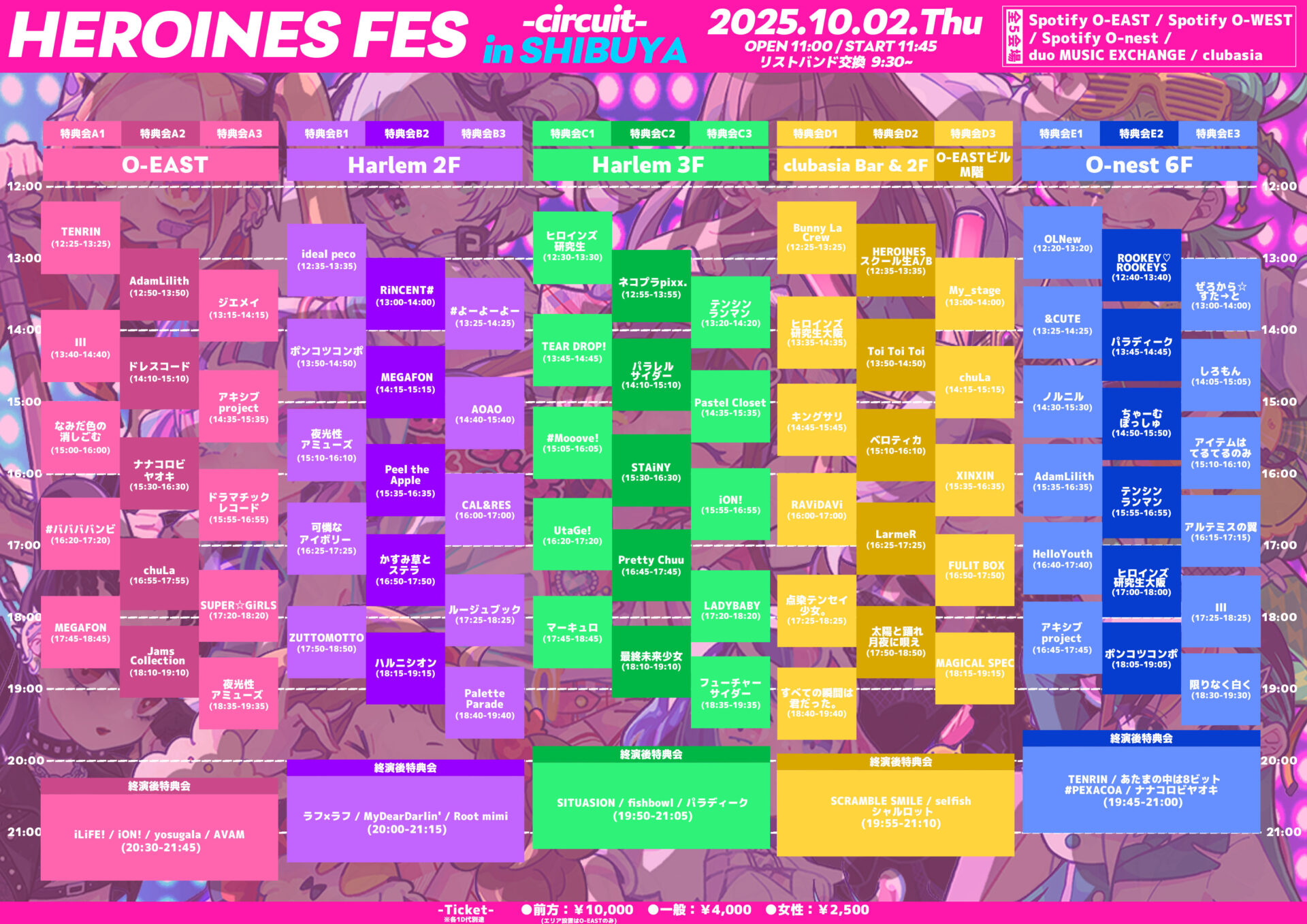 HEROINES FES ~渋谷サーキット~ Spotify O-EAST / Spotify O-WEST / Spotify O-nest / duo MUSIC EXCHANGE / clubasia